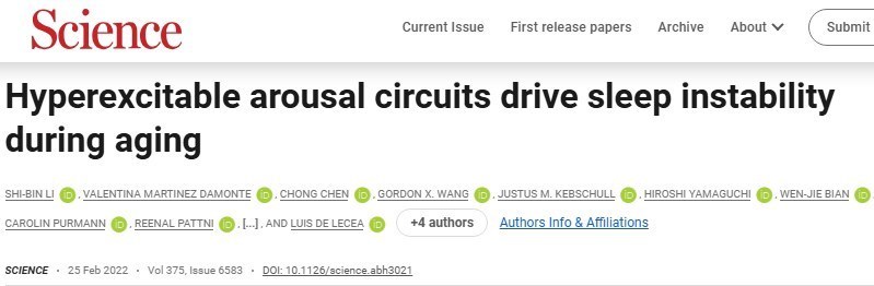 《Science》上的一项研究证实了老年人睡眠质量会变差的观点。研究发现随着年龄增加,脑内与调节觉醒状态相关的关键神经元会发生显著变化,导致老年人睡眠中出现不稳定、片段化的现象。