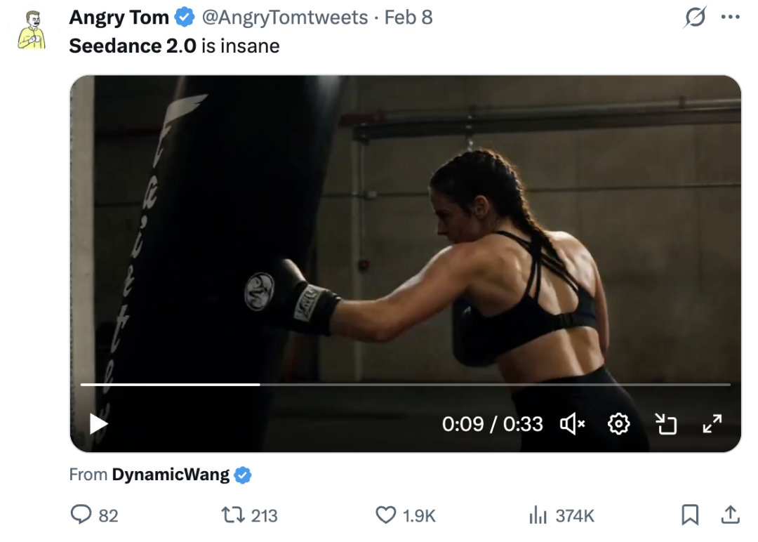来源 / 节点财经 ]article_adlist-->刚被“AI杀死SaaS”,引发全球资本市场软件股震荡的消息刷屏,这不,“AI颠覆影视工业”的论调又甚嚣尘上,只不过这次的主角是中国公司——字节跳动于2月7日开启灰度测试的,AI视频生成模型Seedance2.0,迅速在行业内外引发关注。